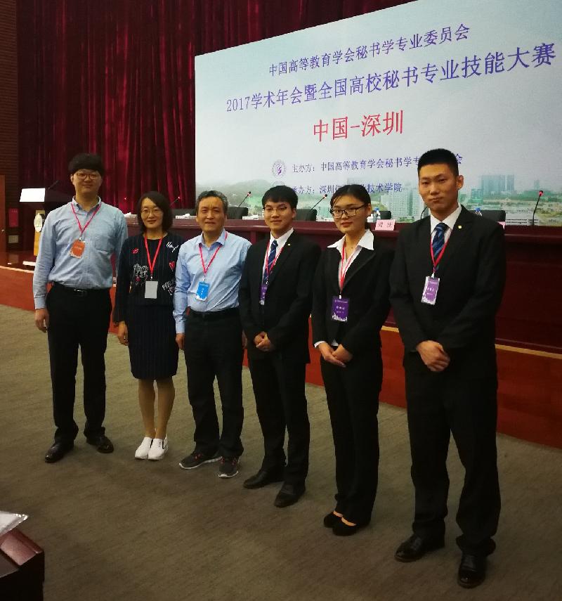11月3-6日,2017高校秘书专业技能大赛在深圳信息职业技术学院举行, 由行政141班孙定勇、行政151班刘子格、行政151班孙鸿起三名同学组成的代表队代表学校参赛,荣获本科组理论知识一等奖、本科组理论知识三等奖、本科组情景展示二等奖、本科组口语表达三等奖共计四项单项奖。