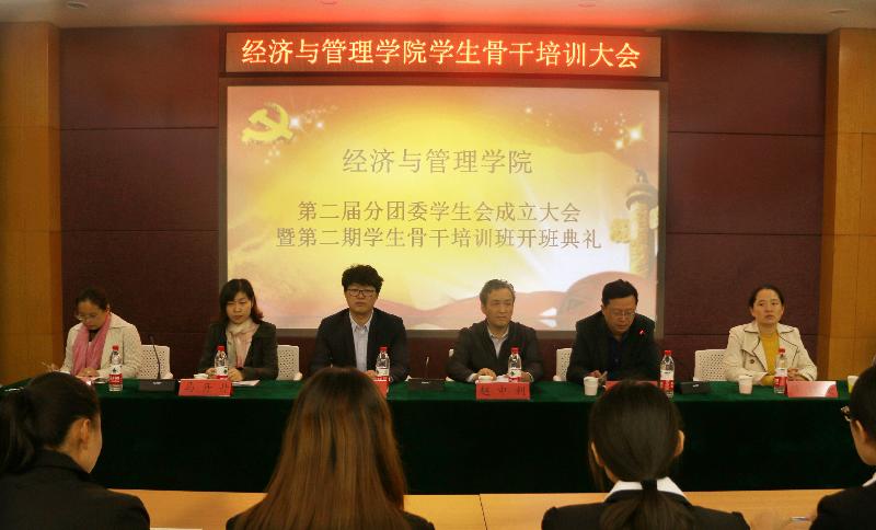 10月16日晚,经济与管理学院第二届分团委学生会成立大会在1号教学楼B座104教室顺利举行。经济与管理学院分党委书记赵中利,分党委副书记王洪鹏,分团委书记亓秀梅,所有辅导员出席本次大会,第二届分团委学生会全体部长及副部参加本次会议。