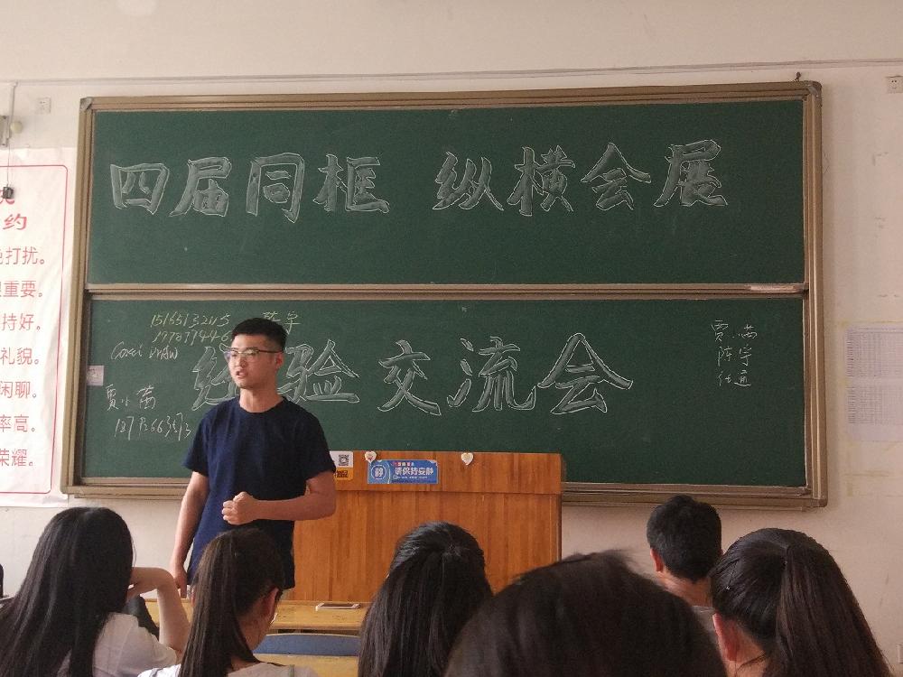在两个多小时的交流会中,贾小茜就实习问题做了详细讲解,她认为:在会展公司的实习工作,重点是掌握电脑技术,熟练掌握各种办公软件是工作的出彩点,同时也必须学好专业课程,积极参加比赛活动,为以后的工作打下基础。陈宇以自己的切身经历向同学们讲述了考研的宝贵经验。任通针对不同年级分享了不同的经验并给出恰当的建议:对于14级同学,他分享了有关实习与论文的的经验;对于15级同学,他建议同学们要认真学习专业课知识,加强专业知识的深度与广度,另外多参加比赛及实践活动;对于16级同学,他提倡同学们珍惜、把握好大学时光,利用课余时间多参加社会实践充实自己。