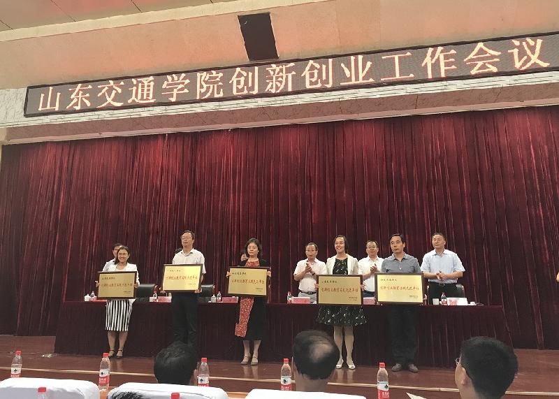 5月24日下午,学校在长清校区学术报告厅举办了创新创业工作会议。会上,校领导宣读了《关于表彰创新创业教育实践先进单位和优秀个人的通报》,为2016年度学生学术科技竞赛获得突出成绩的获奖团队学生代表、创新创业教育实践优秀个人、创新创业教育实践先进单位颁奖,并为创新创业示范工作坊授牌。