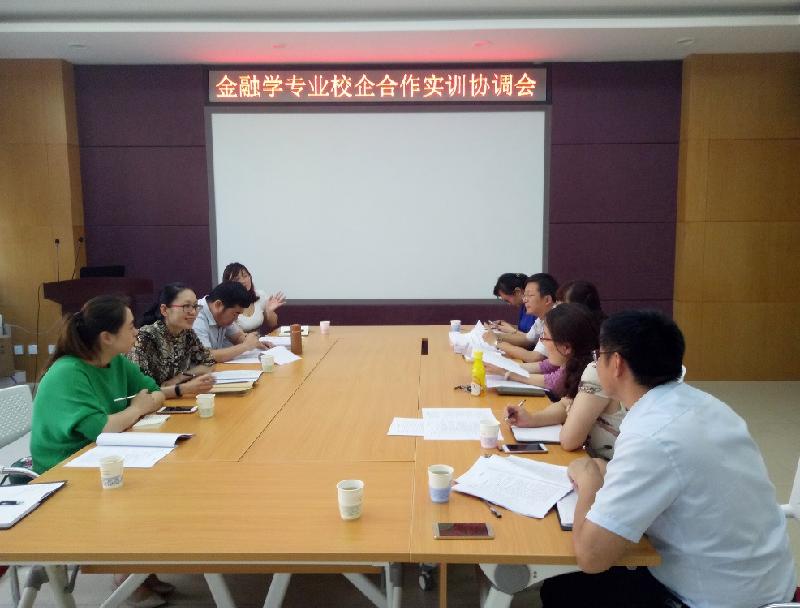 为做好2014级金融学(校企合作)专业的实训工作,解决之前实训过程中存在的实际问题,切实保障校企共建和人才培养工作落到实处,经济与管理学院于5月25日下午在1B104会议室召开了金融学专业校企合作实训协调会。出席此次会议的有经济与管理学院院长马小南、副院长孙烨、分党委副书记王洪鹏、金融系主任周鲁柱,山东双元教育咨询有限公司副总经理赵媛媛、校区主管侯满丽、企合部主任廉立生、实训中心主任李盟盟等10人。会议由孙院长主持。