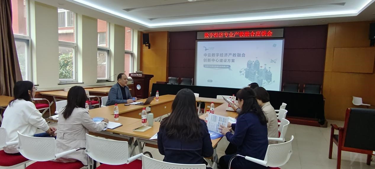 11月5日上午,数字经济专业产教融合座谈会在1B104举行。北京中云国创数据科技有限公司市场总监李建波,学院院长耿中元、副院长聂云霞,及数字经济系骨干教师参加会议。座谈会由数字经济系主任周桢主持。