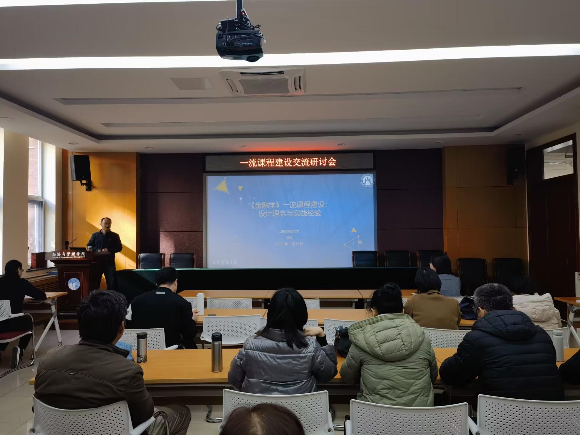 11月16日下午,经济与管理学院在1B104会议室举办一流课程建设交流研讨会,邀请山东省金融高端人才、山东财经大学山东金融发展研究院院长、教授冯林作题为“《金融学》一流课程建设:设计理念与实践经验”的专题讲座。学院负责人,系主任、课堂教学改革团队成员、部分中青年骨干教师参加了会议。会议由学院副院长孙烨主持。