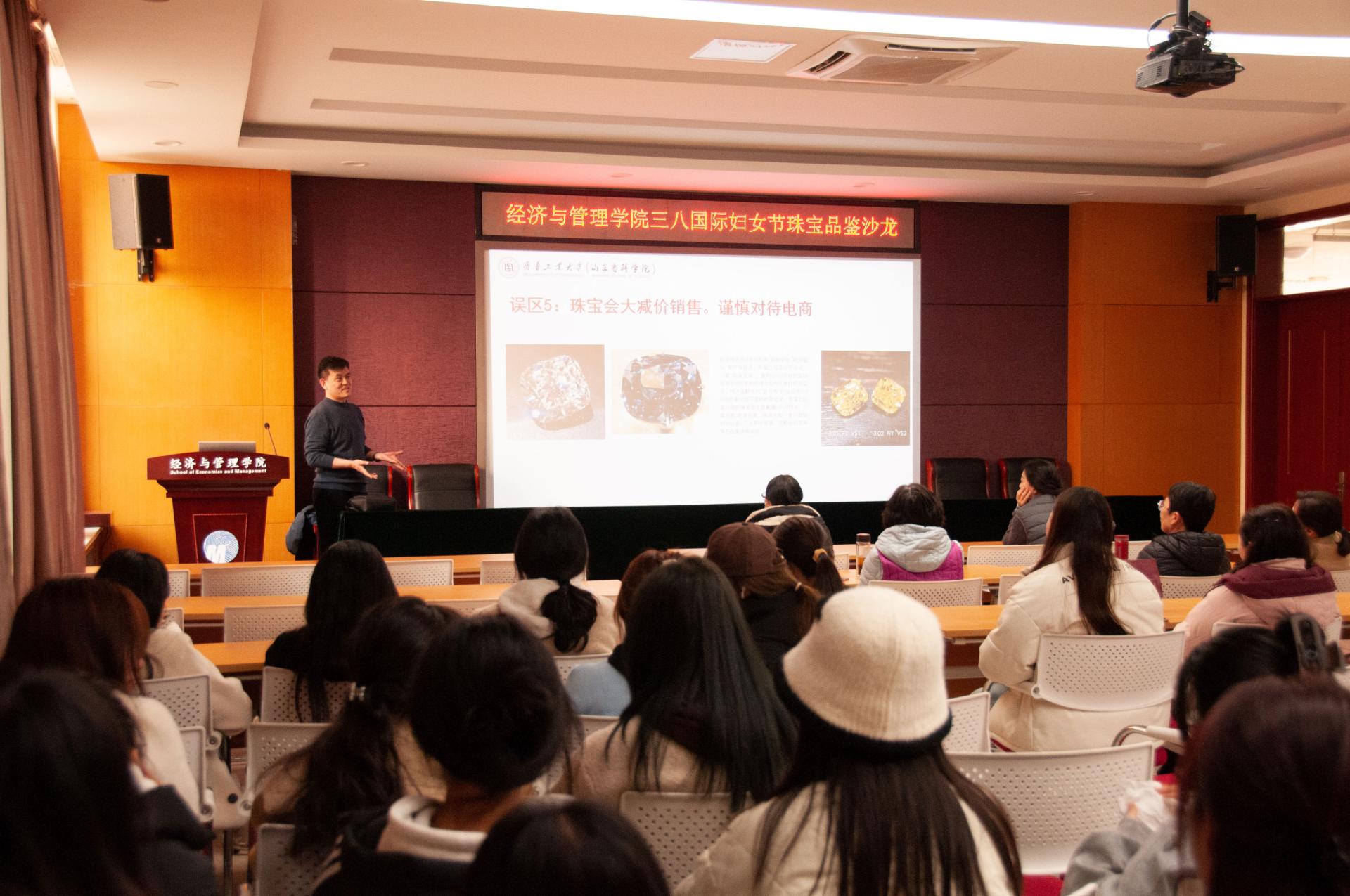 如悦繁花,一路芳华,为庆祝第114个国际劳动妇女节,丰富广大女教职工们的精神文化生活,提升女性综合素养,3月6日下午,经济与管理学院于1B104组织开展 “三八国际妇女节珠宝品鉴沙龙”活动。