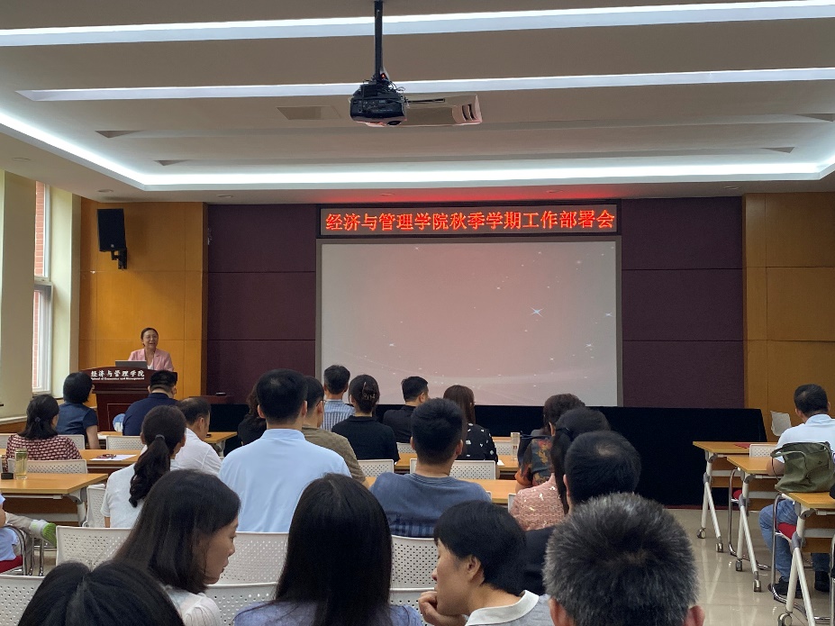 8月27日下午,经济与管理学院在1B104召开2025年秋季学期工作部署会议,学校党委委员、副院长张萌萌出席会议。会议由学院党委书记赵晖主持。
