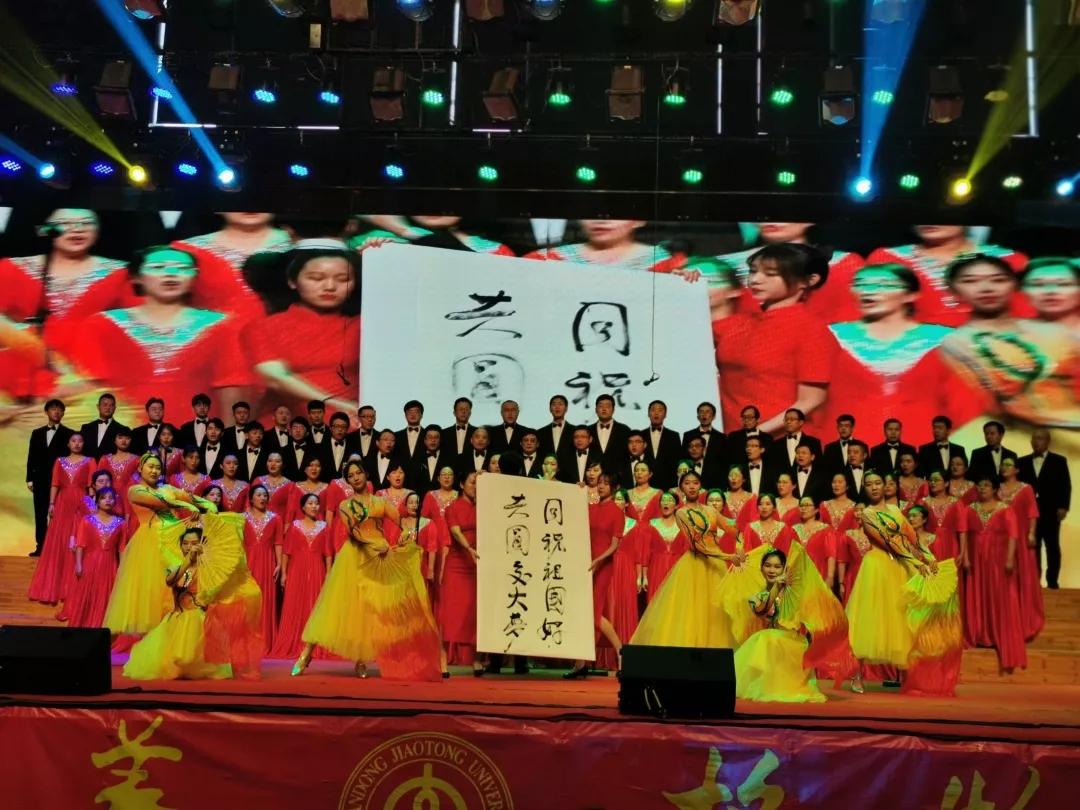 我院教职工队伍在主持人的介绍下闪亮登场,他们用饱含深情、激昂嘹亮的歌声,盛赞当代祖国的伟大成就,表达新时代、新作为的坚定决心。本次合唱比赛我院参赛曲目共有两首:《乡愁四韵》唱出了思乡爱国之情,更唱出了所有中国人和祖国之间血浓于水的拳拳亲情;《在你伟大的怀抱里》抒发了作为华夏人的自豪之情和对祖国母亲的深情祝愿。最后赵书记题写毛笔字“同祝祖国好,共圆交大梦”,表达了对国家和学校发展的美好期冀。